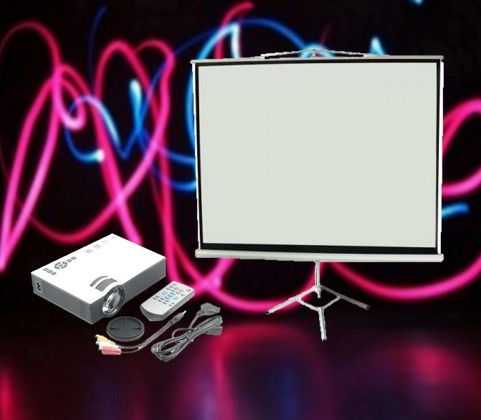 Écran de projection 113 pouces avec trépied. Diagonale de l'image 289cm.
